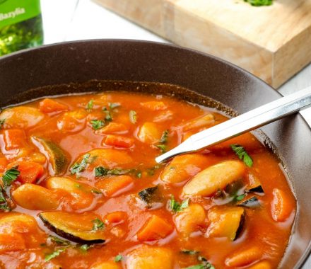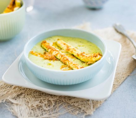 Krem z cukinii z cukinią pieczoną w parmezanie