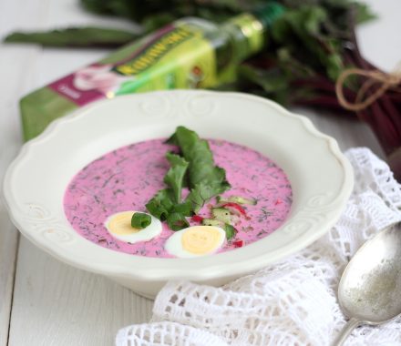 Chłodnik z botwinki z salsą z ogórka i rzodkiewek