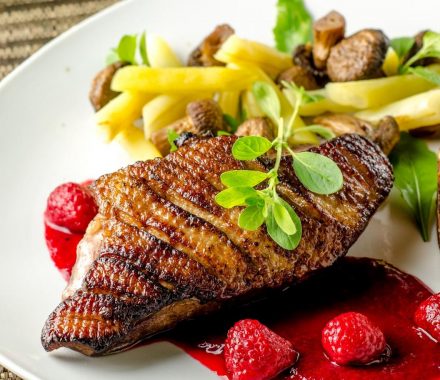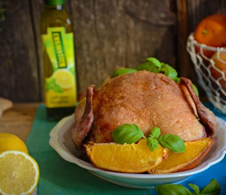 Kaczka pieczona z jabłkami w soku pomarańczowym