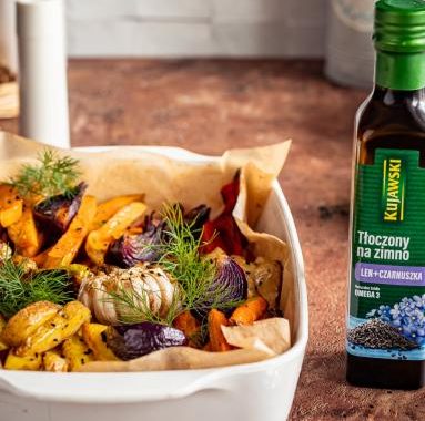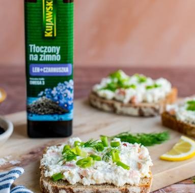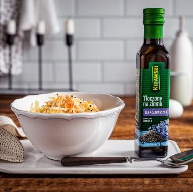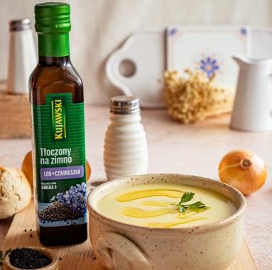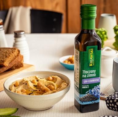 Kujawski LEN + CZARNUSZKA to jeden z dostępnych produktów w linii olejów Kujawski LEN tłoczony na zimno.