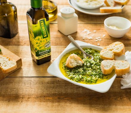 Olej z lnianki to jeden z sześciu dostępnych produktów w linii olejów Kujawskich tłoczonych na zimno.