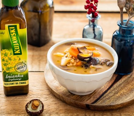 Kujawski z lnianki (rydzowy) tłoczony na zimno powstaje ze starannie wyselekcjonowanych i kontrolowanych nasion lnicznika siewnego. Nasiona poddawane są mechanicznemu tłoczeniu na zimno (w temperaturze do 50°C), dzięki czemu olej zachowuje intensywny złoty kolor (o odcieniu uzależnionym od nasion) i charakterystyczny smak korzenny z nutą cebuli. Olej z lnianki (rydzowy) to źródło naturalnych składników odżywczych, w tym cennego kwasu omega-3.