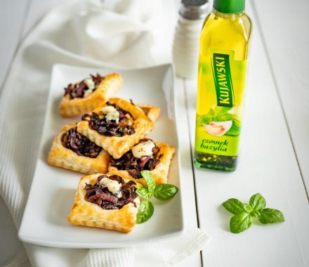 Olej Kujawski z czosnkiem i bazylią to połączenie oleju rzepakowego z pierwszego tłoczenia z aromatycznymi ziołami i przyprawami.